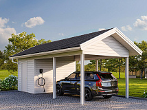 | Название модели: | Навес для одного авто с хозблоком №67 |